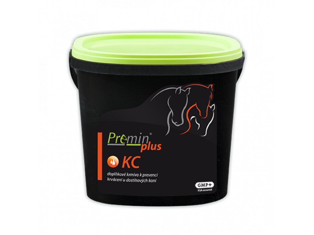 Premin® plus KC je minerální krmivo určené pro dostihové koně v zájmovém chovu v plné zátěži jako prevence proti krvácení. Obsahuje vitamin C, který posiluje pevnost cévních stěn, čímž zamezuje jejich rupturám a následnému krvácení. Vitamin K3 snižuje krvácivost podporou tvorby koagulačních faktorů.